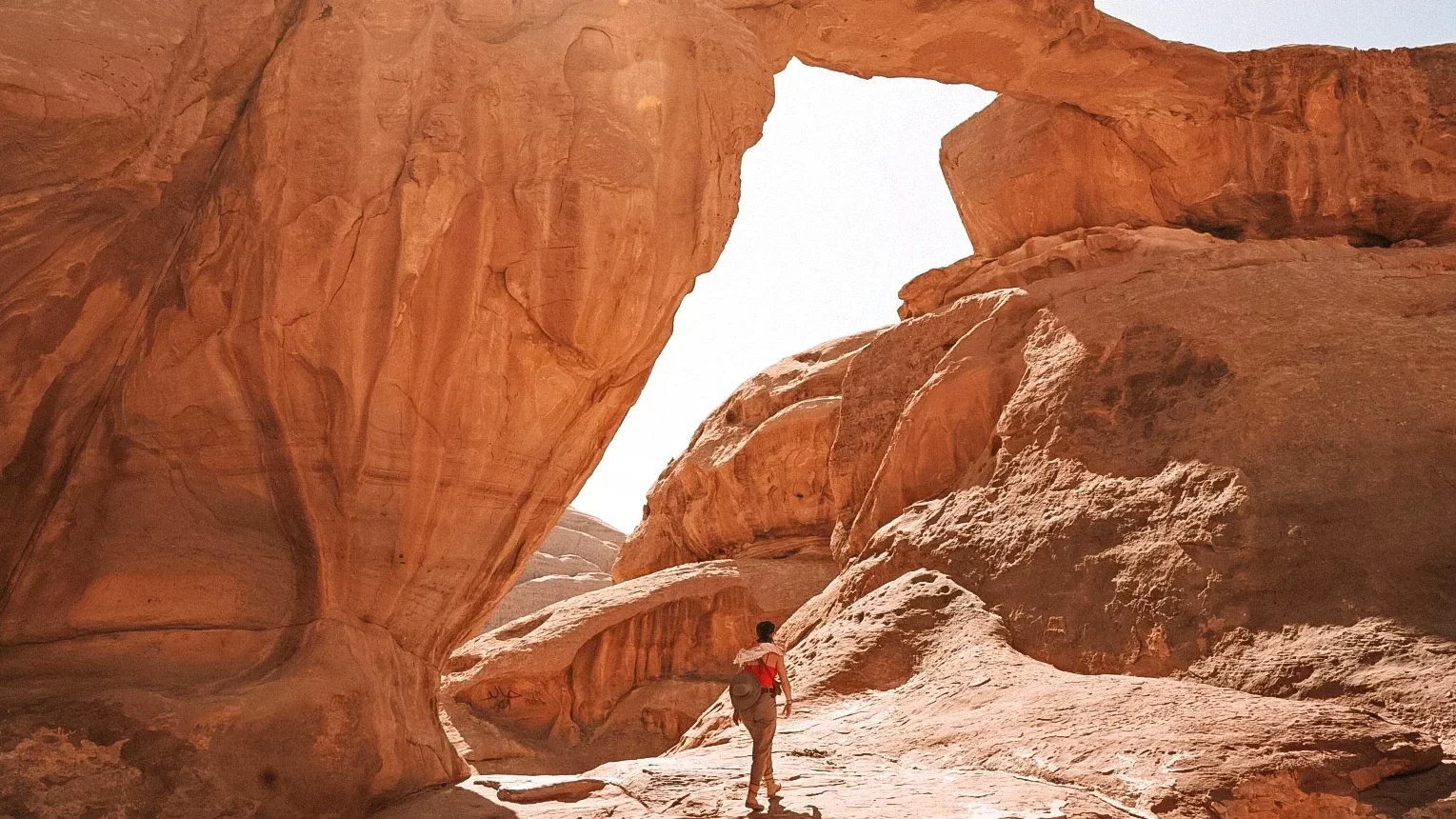 Wadi Rum also known as The Valley of the Moon is a valley cut into sandstone and granite rock in southern Jordan. Wadi Rum has been inhabited by many human cultures – like the Nabatean – since prehistoric times, which left their mark in the form of rock paintings, graffiti, and temples. As the largest valley in Jordan, Wadi Rum, hosts our country’s highest mountain: Jabal Umm ad Dami (1,840m high). From there – on a clear day – you can enjoy a breathtaking view of the Red Sea and the Saudi Arabian border.